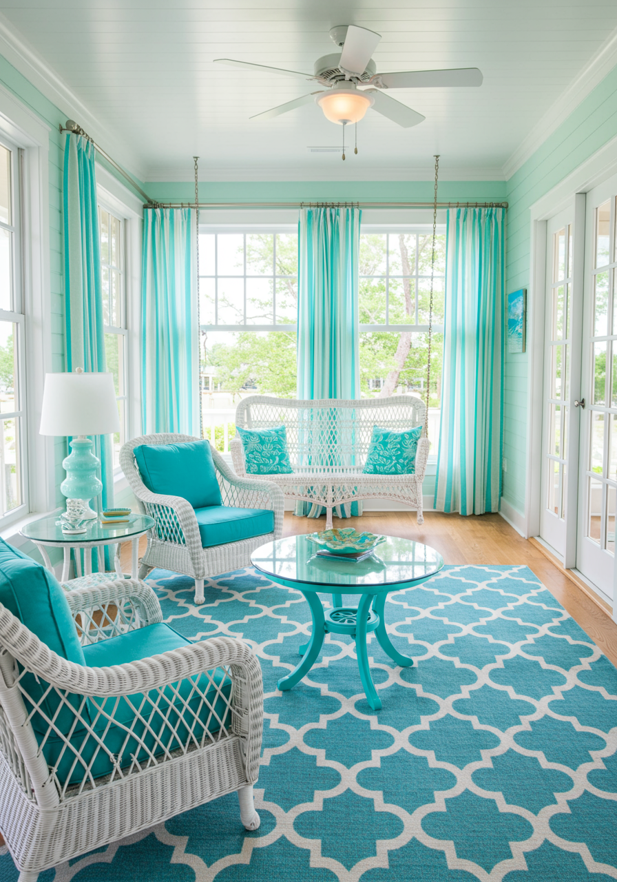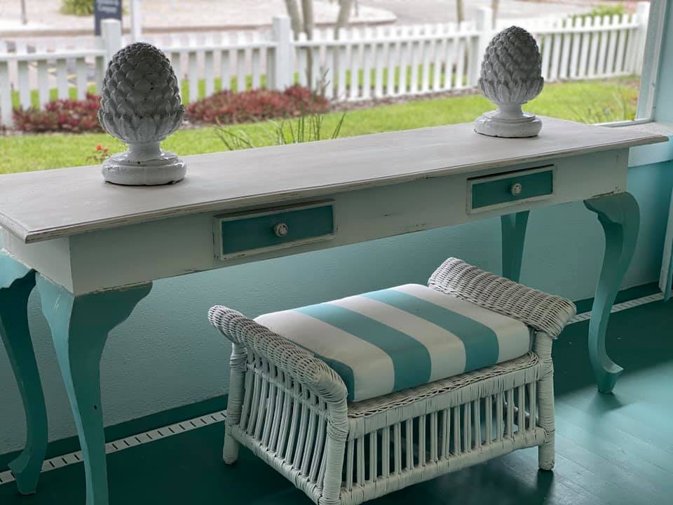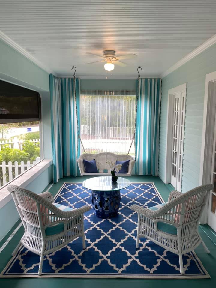 This house was allowed to be used for the 25th Annual Jewels on the Bay Designer Showhouse benefiting the Boys & Girls Clubs of Sarasota County in its 2020 Showhouse. The following designers gave their time to decorate the rooms in the house in a cohesive lovely manner. Due to COVID19, the fundraiser was canceled. Thankfully because of the generosity and giving spirit of the owners, a portion of the sale proceeds will be donated to the Boys & Girls Club. Although many of the furnishings do not remain in place (save the master bedroom and a couple of other pieces), the furnishings can be viewed for design inspiration online. Below are a few of my photos of the fabulous screened porch.